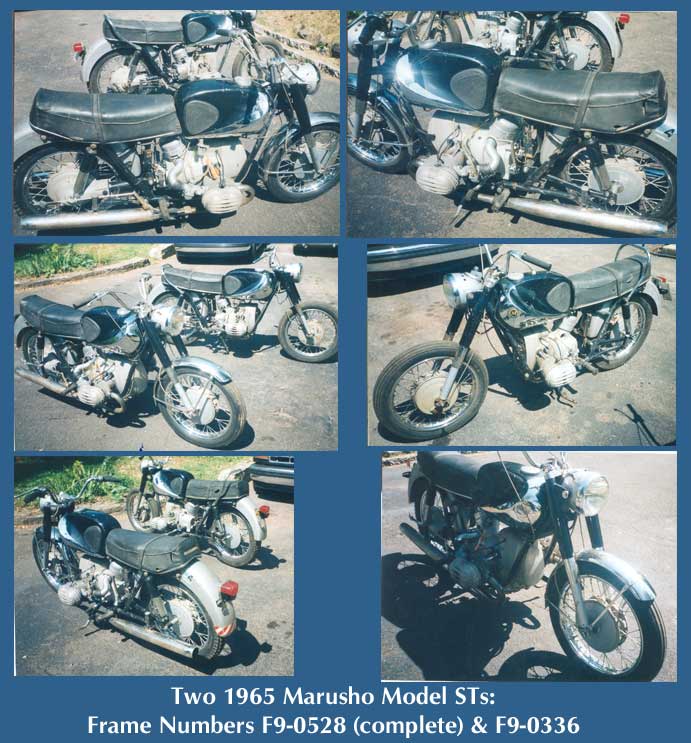 These two Marusho STs, frame numbers F9-0528 ("runs good") and F9-0336 (parts bike), were sold to a Maryland collector September, 2003 (from Pennsylvania). Photos by the seller.