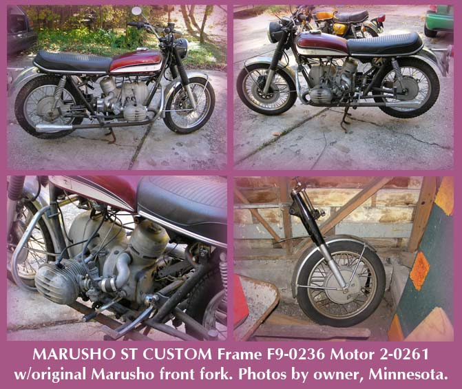 1965 Marusho ST custom sold by owner in Minnesota in recent years: Frame number F9-0236, motor number 2-0261, running. Photos by the owner.
